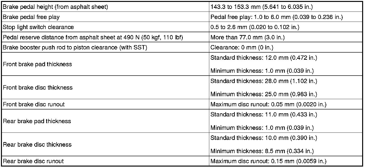 SERVICE SPECIFICATIONS: BRAKE: SERVICE DATA