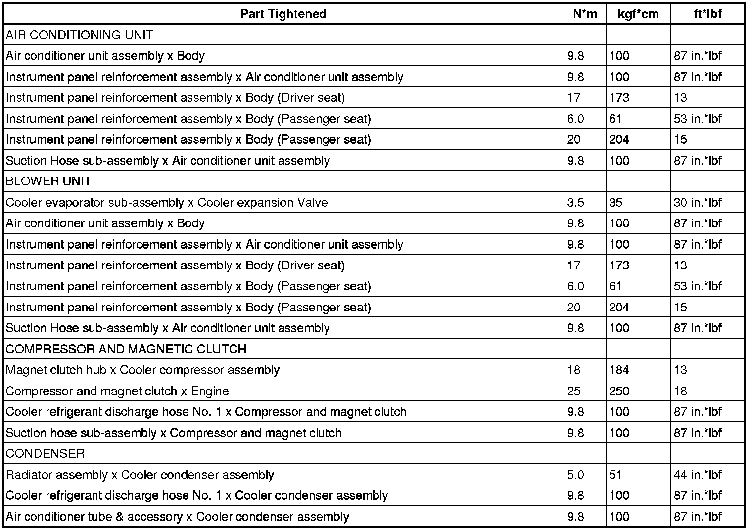 SERVICE SPECIFICATIONS: AIR CONDITIONING: TORQUE SPECIFICATIONS