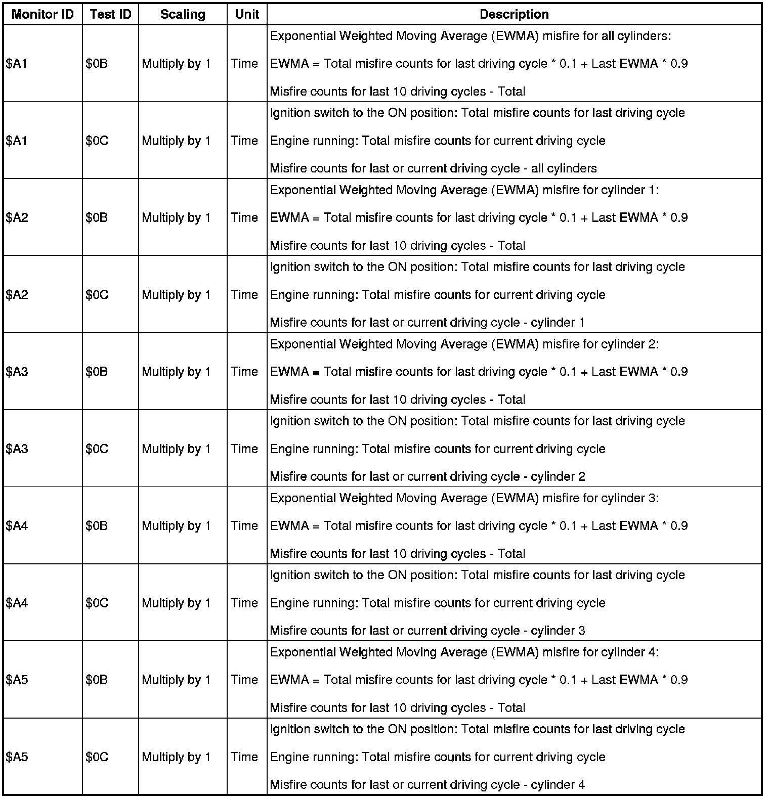 If you use a generic scan tool, multiply the test value by the scaling value listed below.