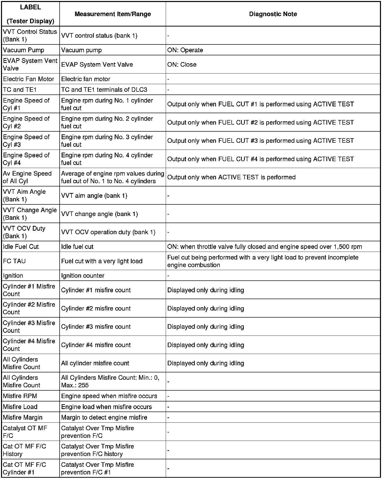 2. LIST OF FREEZE FRAME DATA