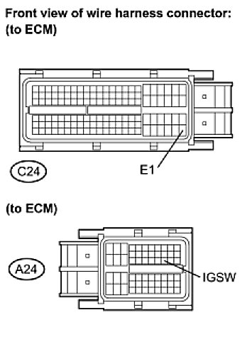 (c) Measure the voltage between the terminals of the A24 and C24 ECM connectors.