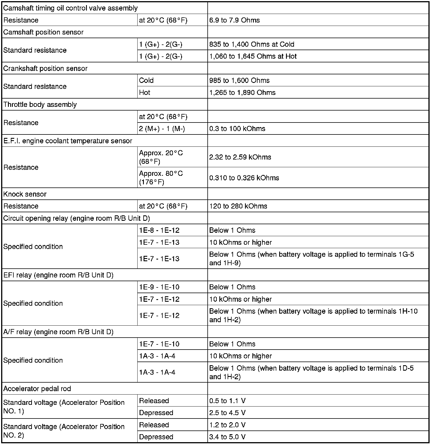 SERVICE SPECIFICATIONS: 2AZ-FE ENGINE CONTROL SYSTEM: