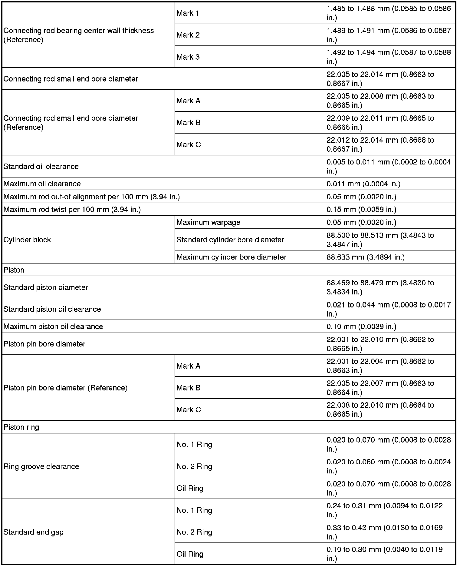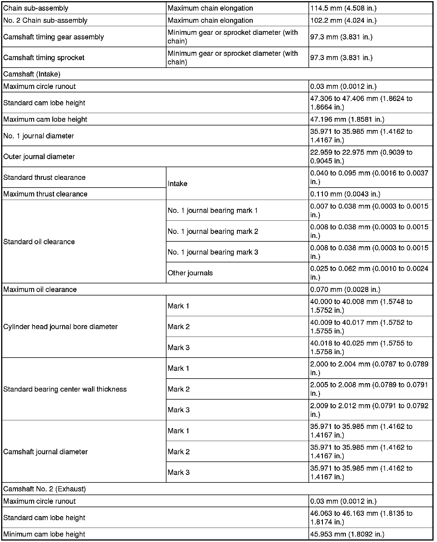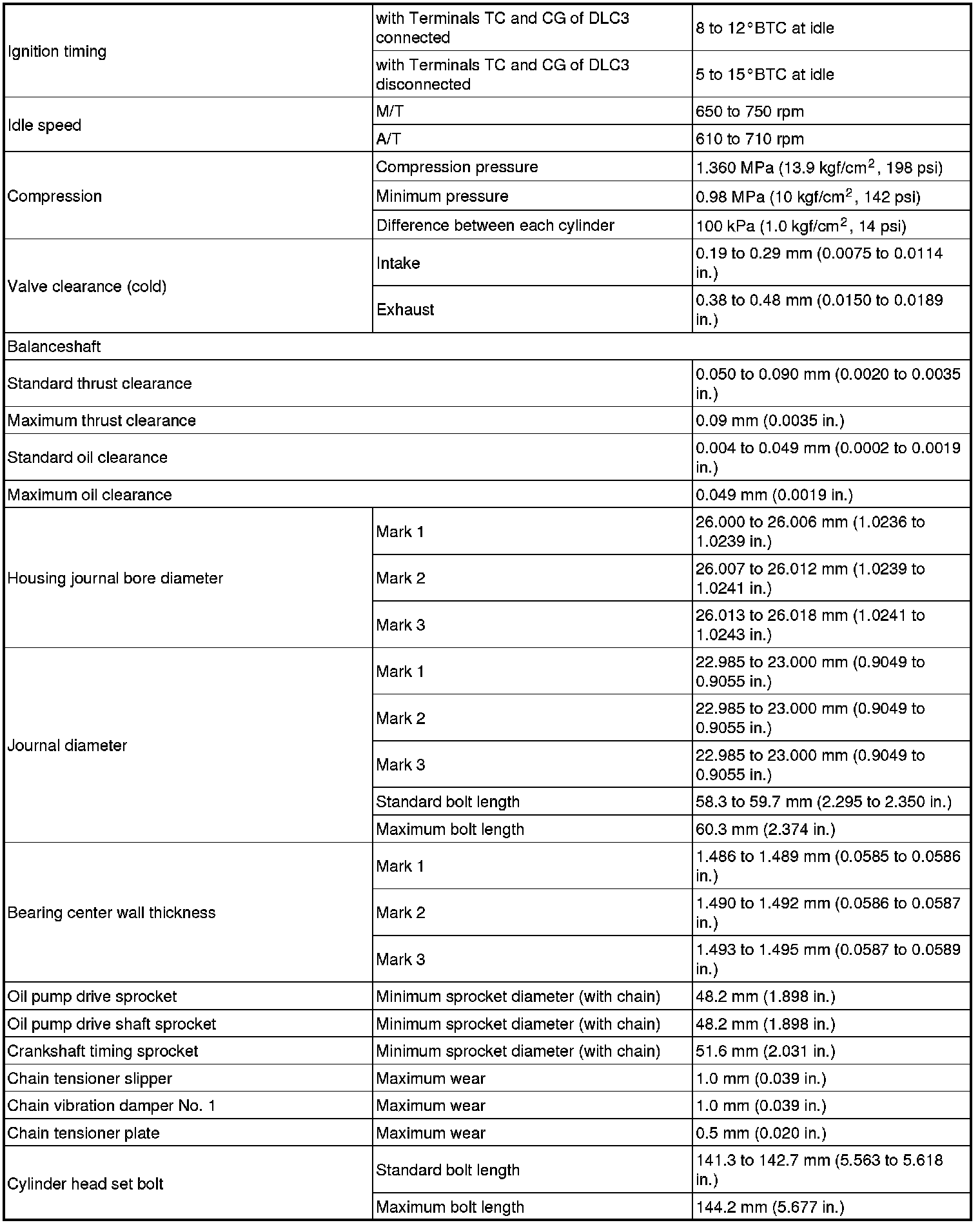 SERVICE SPECIFICATIONS: 2AZ-FE ENGINE MECHANICAL: