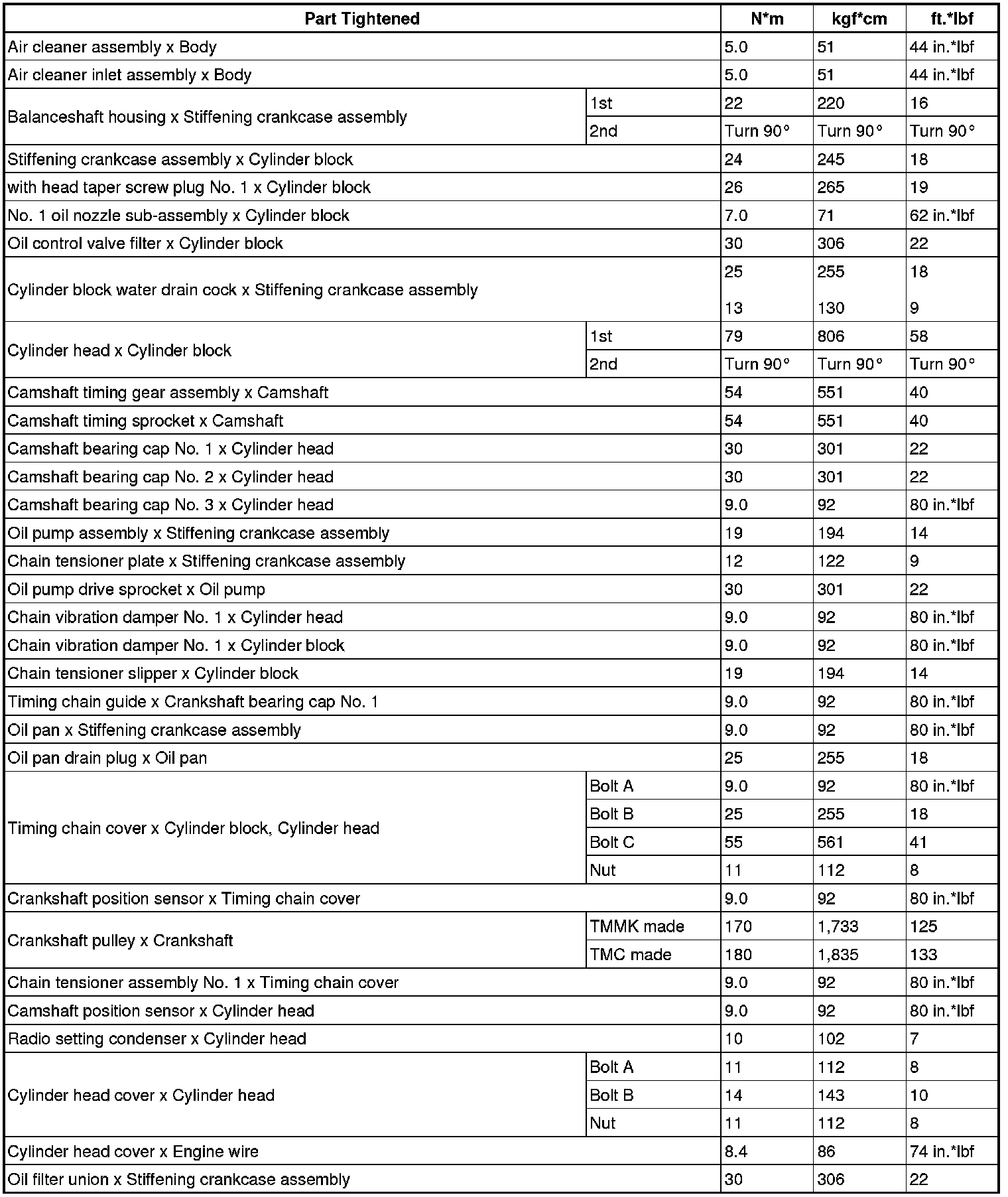 SERVICE SPECIFICATIONS: 2AZ-FE ENGINE MECHANICAL: