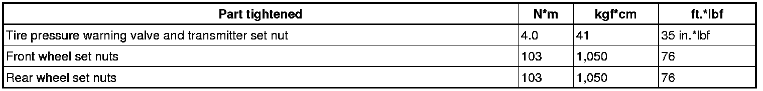 SERVICE SPECIFICATIONS: TIRE AND WHEEL: