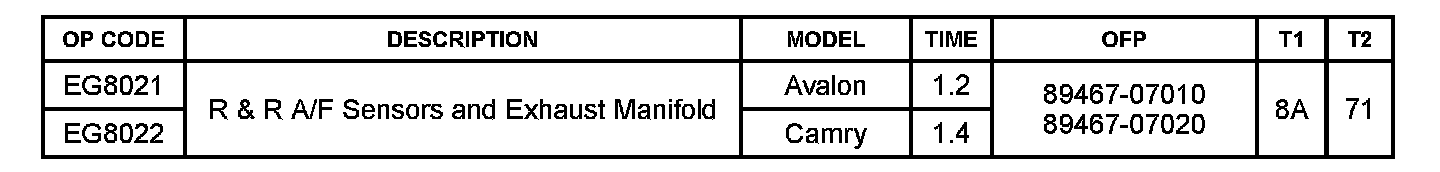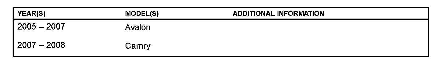 Some 2005 - 2007 model year Avalon and 2007 - 2008 model year Camry vehicles with 2GR-FE engines may exhibit a M.I.L. "ON" condition with one or more of the following DTCs: