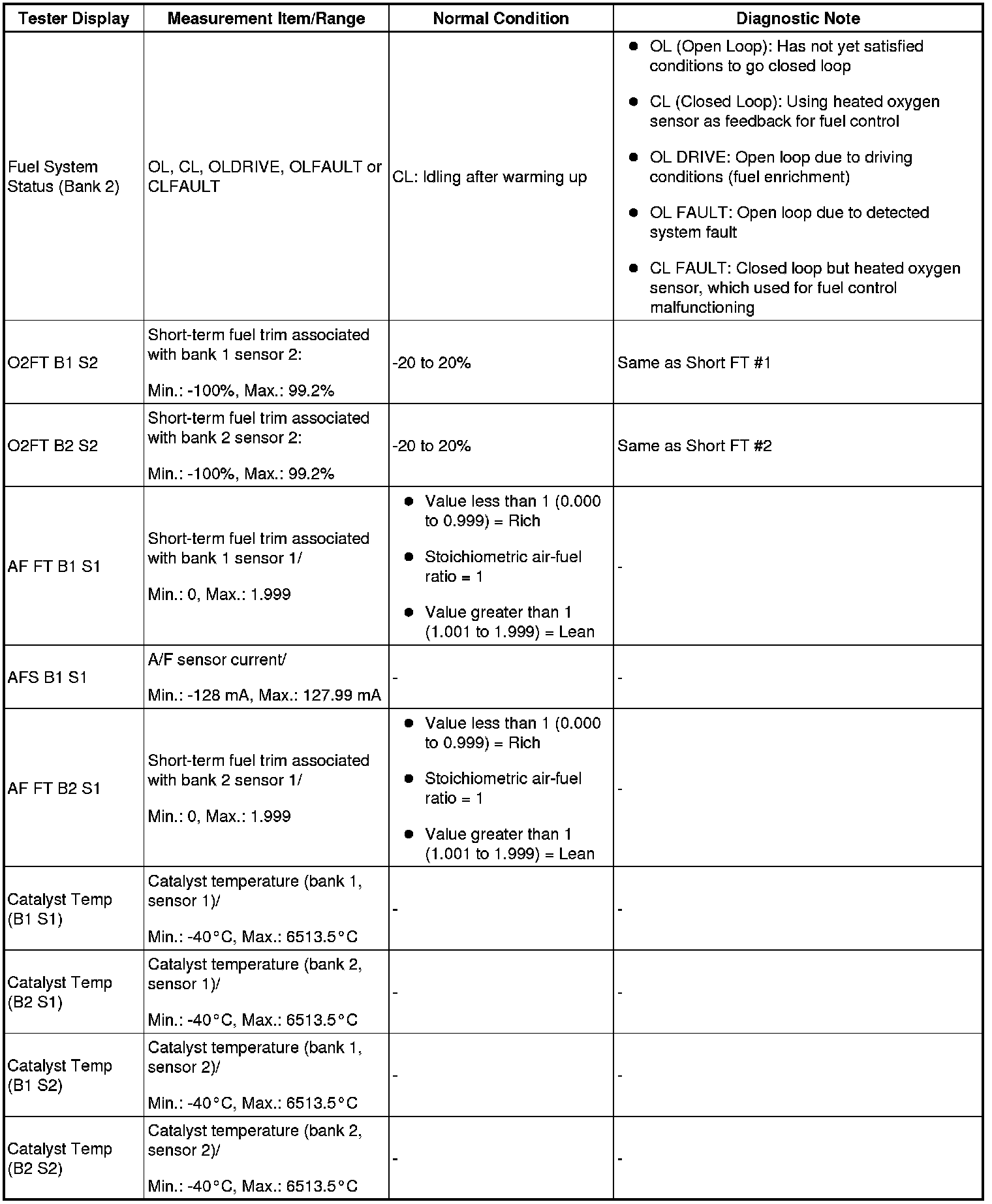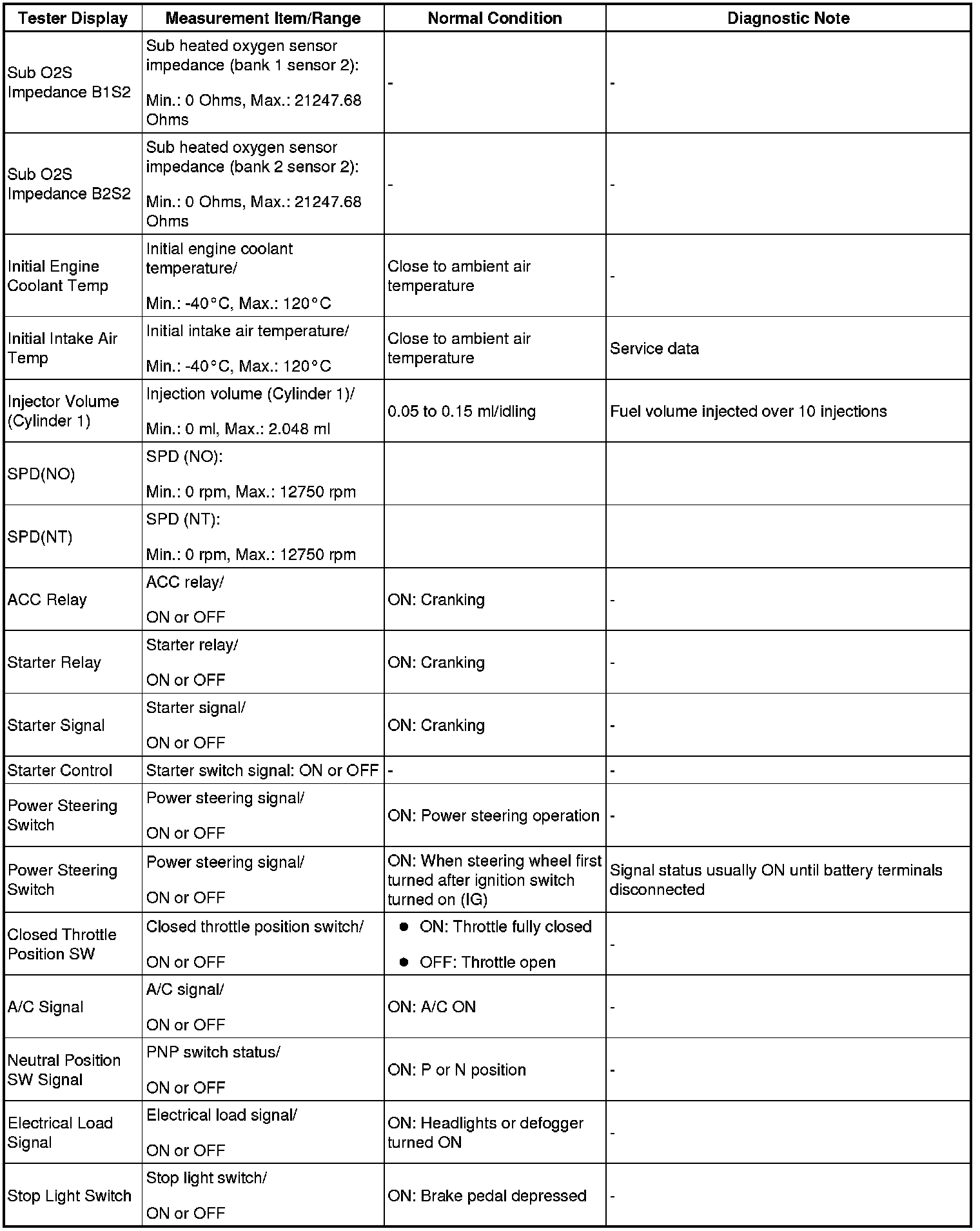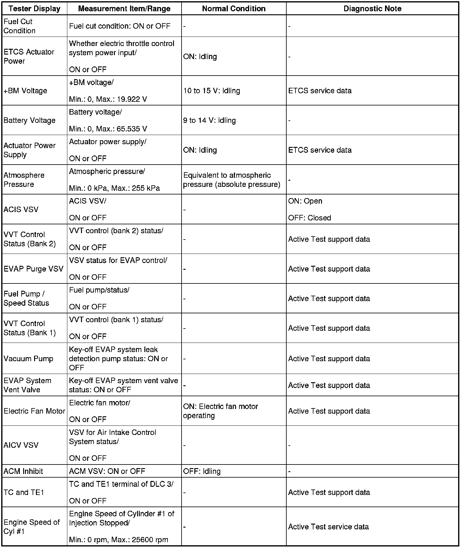 HINT: By reading the Data List displayed on Techstream, you can check values, including those of the switches, sensors, and actuators, without removing any parts. Reading the Data List as the first step in troubleshooting is one method of shortening diagnostic time.