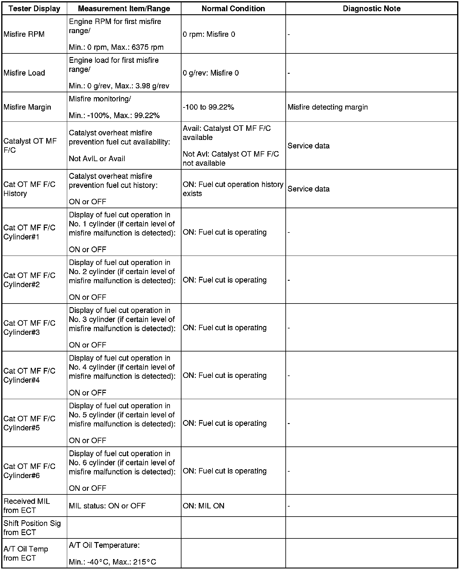 NOTE: *1: If the display of the Data List's Catalyst OT MF F/C item is Not Avl, perform this Active Test with the vehicle stopped and the engine idling. If the display of the Data List's Catalyst OT MF F/C item is Avail, perform this Active Test as described below.
