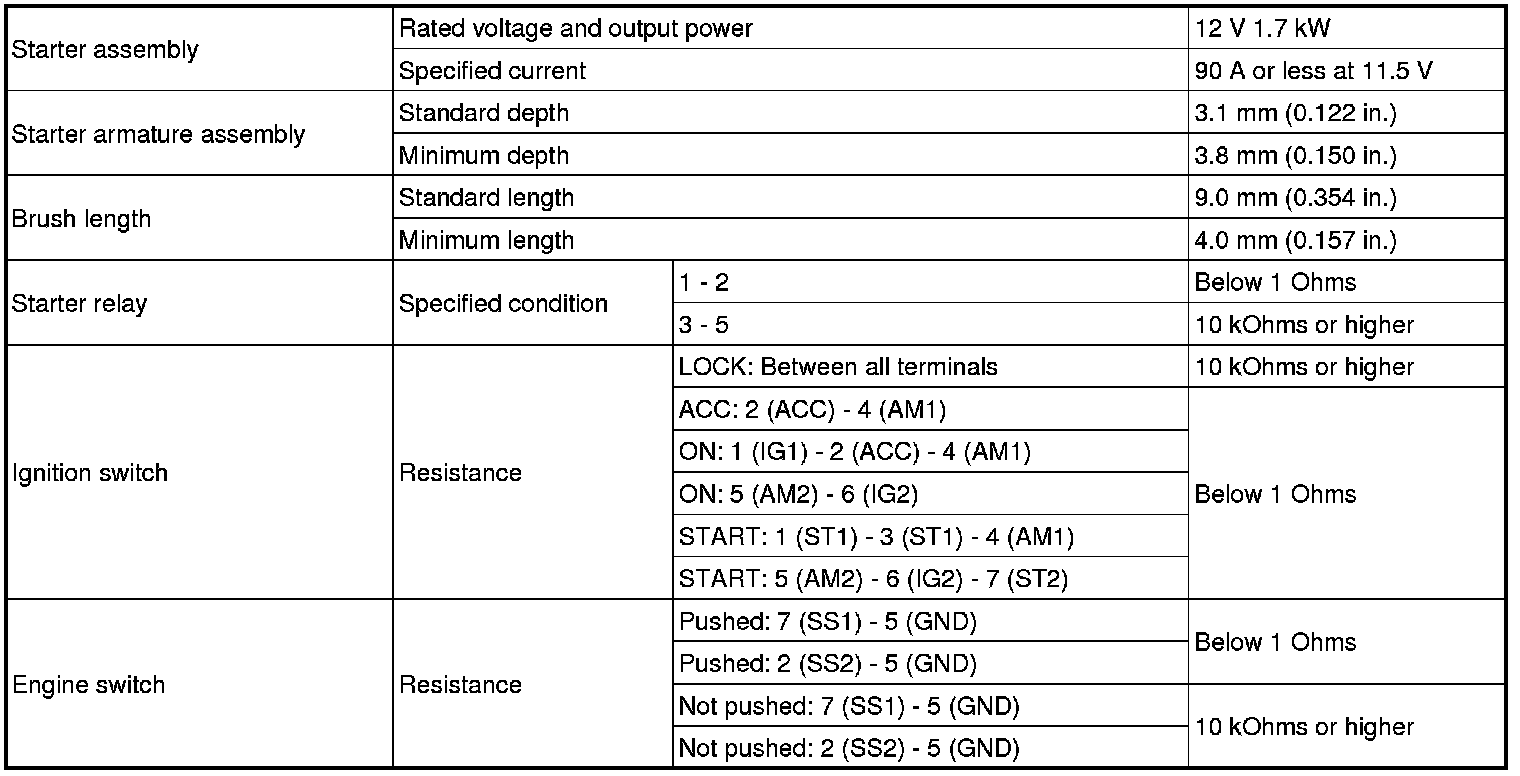SERVICE SPECIFICATIONS: 2GR-FE STARTING: