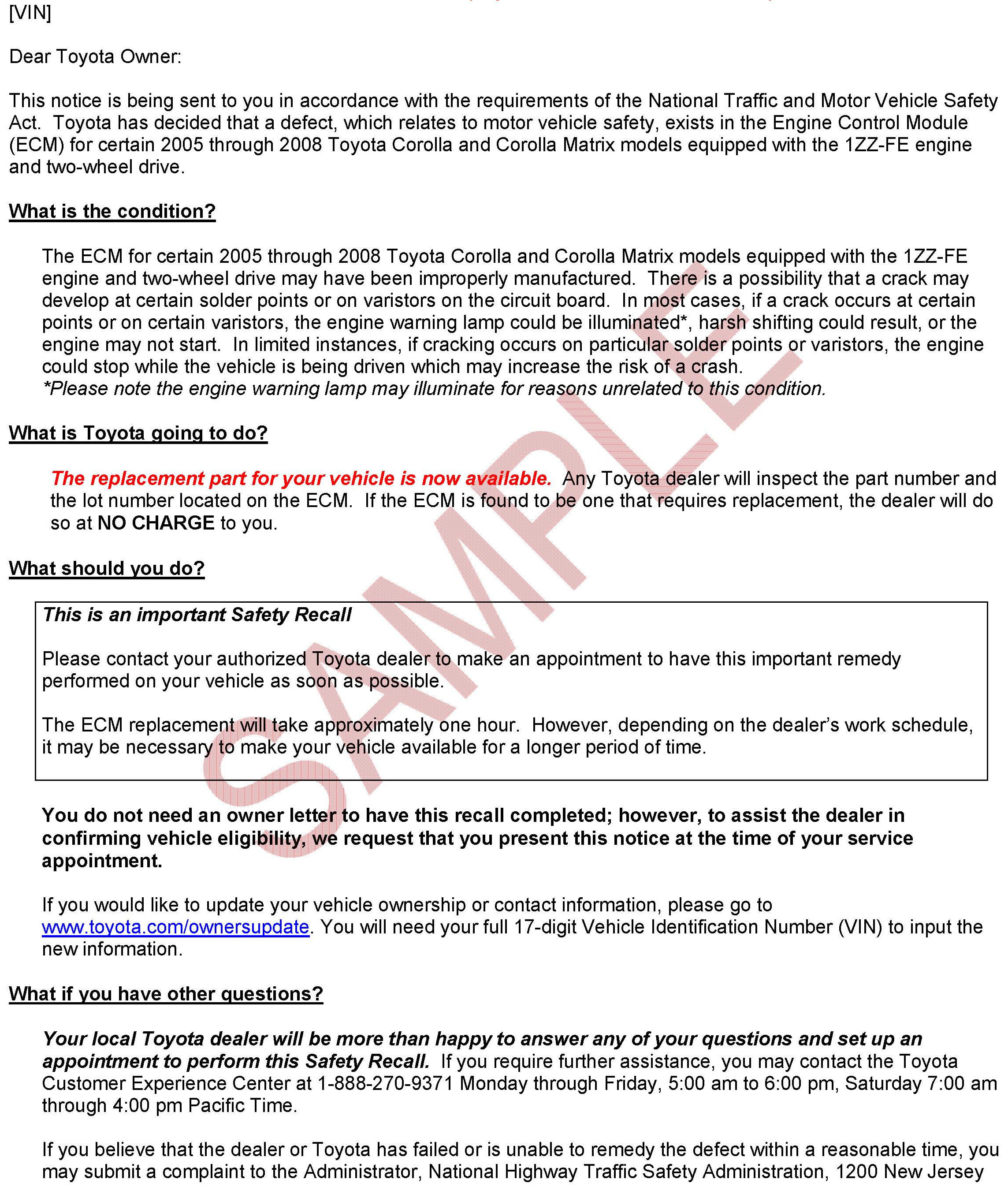 Recall - ECM Replacement