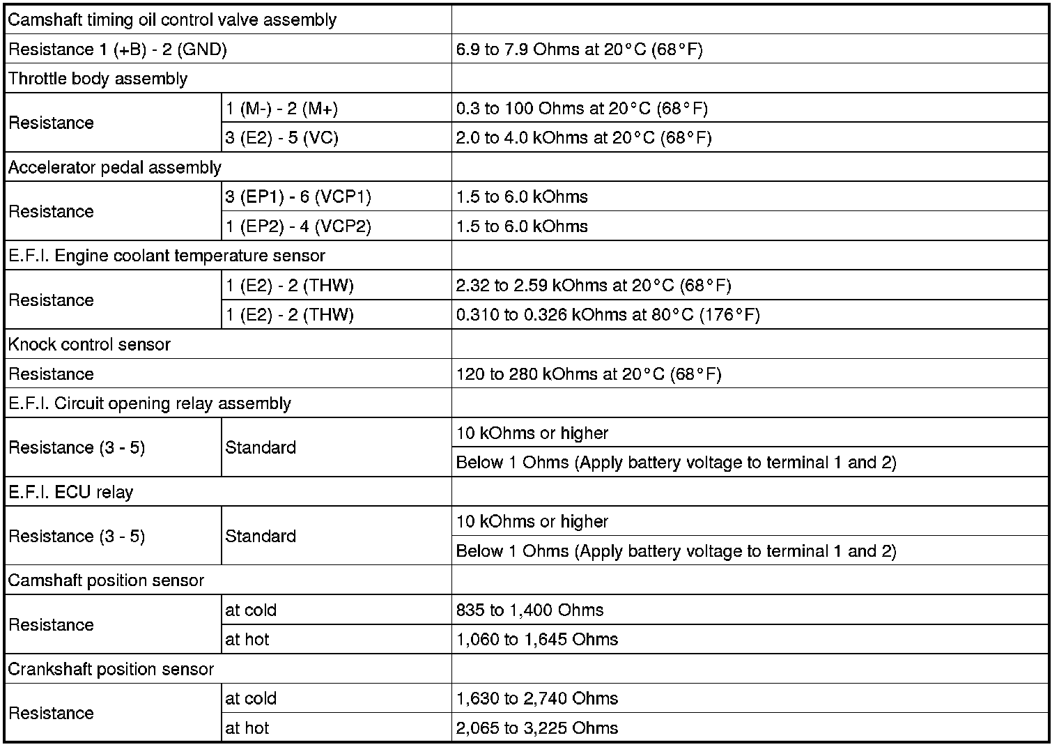 SERVICE SPECIFICATIONS: 1ZZ-FE ENGINE CONTROL SYSTEM: SERVICE DATA