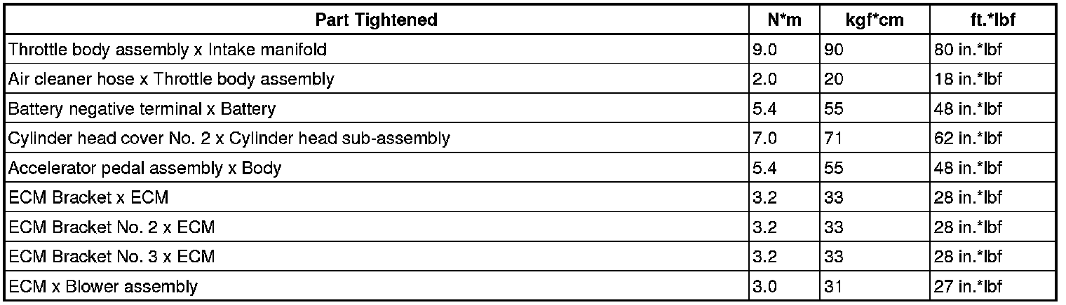 SERVICE SPECIFICATIONS: 1ZZ-FE ENGINE CONTROL SYSTEM: TORQUE SPECIFICATIONS