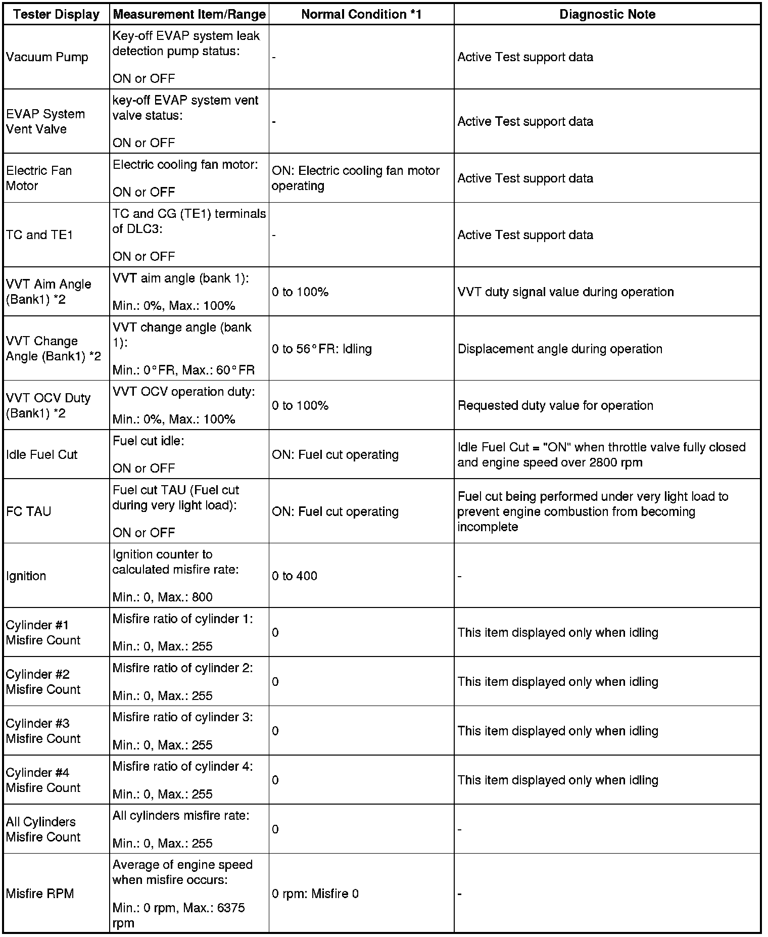 - *2: Values are only displayed when performing the Active Tests: Control the VVT Linear (Bank1). For other Active Tests, the value will be 0.