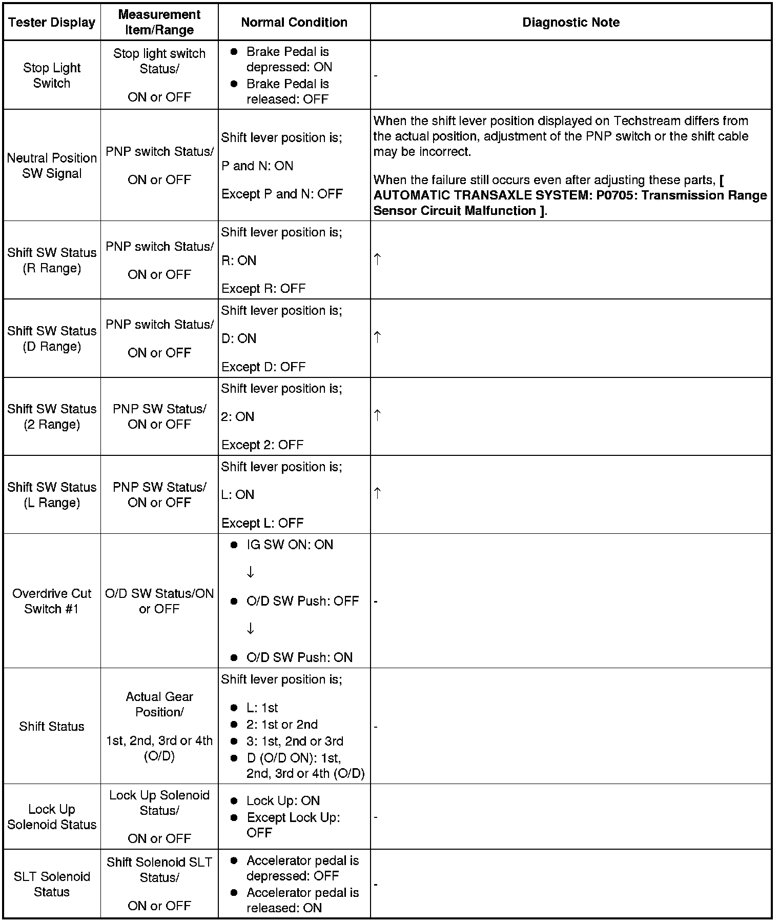 A245E AUTOMATIC TRANSAXLE: AUTOMATIC TRANSAXLE SYSTEM: DATA LIST / ACTIVE TEST