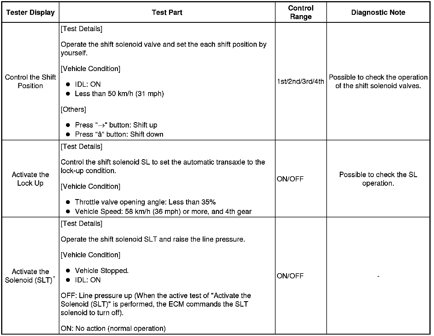 *: "Activate the Solenoid (SLT)" in the Active Test is performed to check the line pressure changes by connecting the SST to the automatic transaxle, which is used in the HYDRAULIC TEST (Hydraulic Test) as well.