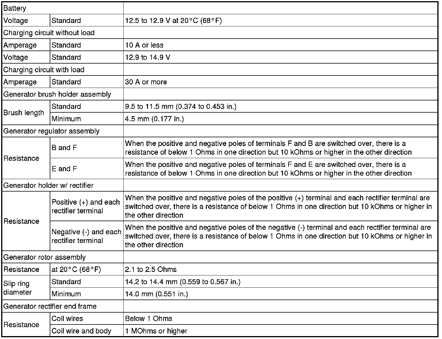 SERVICE SPECIFICATIONS: 1ZZ-FE CHARGING: SERVICE DATA