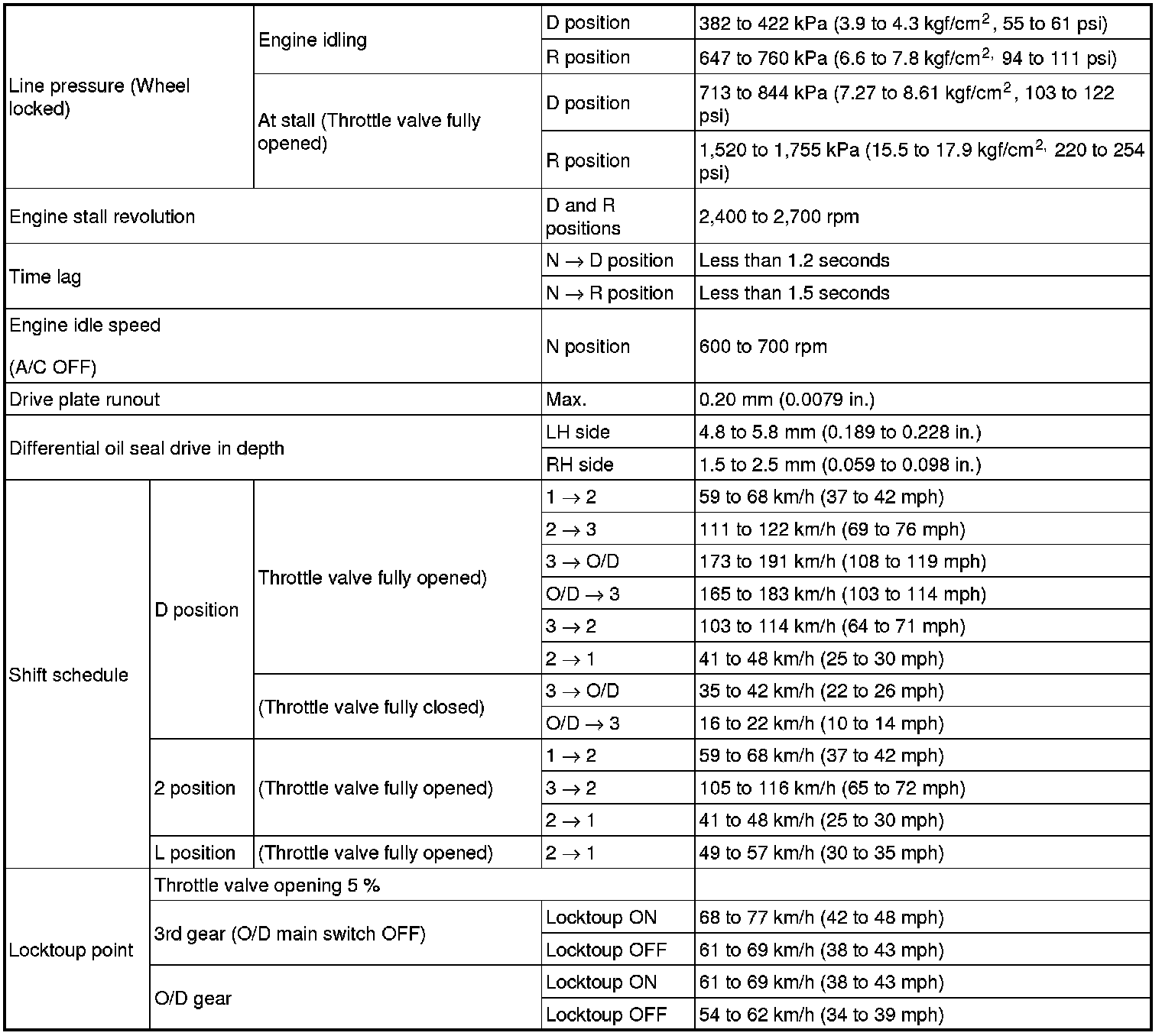 SERVICE SPECIFICATIONS: A245E AUTOMATIC TRANSAXLE: SERVICE DATA