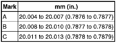 Piston pin outer diameter 20.004 to 20.013 mm (0.7876 to 0.7879 in.)