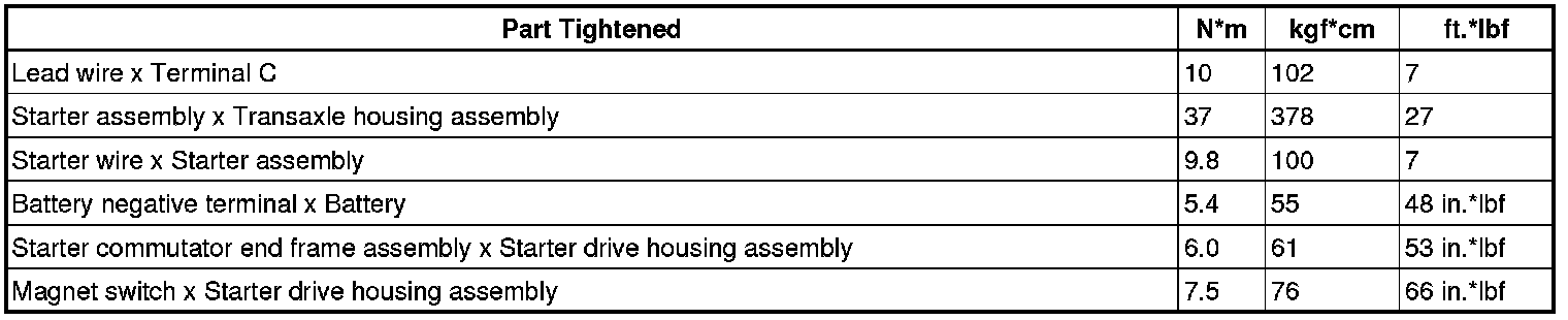 SERVICE SPECIFICATIONS: 1ZZ-FE STARTING: TORQUE SPECIFICATIONS