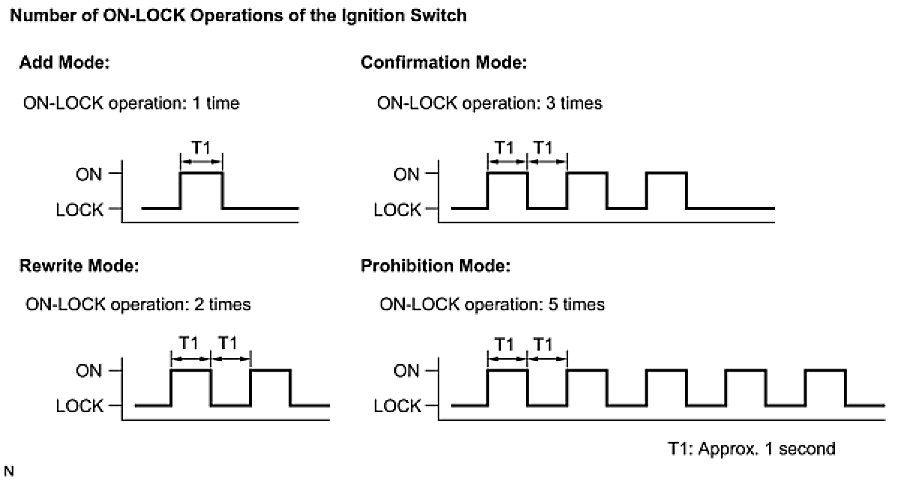 NOTE: If the number of the ON-LOCK operations of the ignition switch is 0, 4 or 6 or more, there will be no response to inform which mode has been selected.