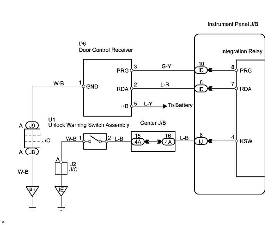 11. CHECK HARNESS AND CONNECTOR (UN-LOCK WARNING SWITCH - INSTRUMENT PANEL J/B - BODY GROUND)