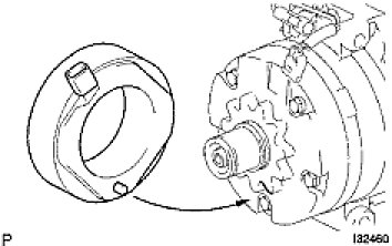 (a) Matching the parts shown in the illustration, install the magnetic clutch stator.