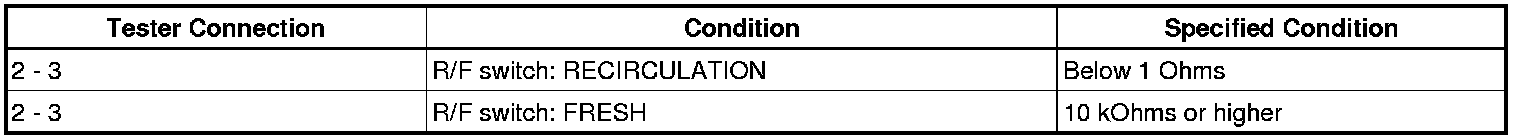 If the resistance is not as specified, replace the air conditioning control assembly.