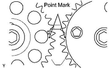 (1) Turn the hexagonal wrench head portion of the camshafts until the point marks of the 2 camshaft timing gears are aligned.