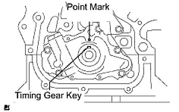 (2) Using a crankshaft pulley bolt, turn the crankshaft to align the timing gear key with the point mark on the oil pump.