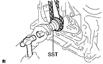 (c) Using SST, install the crankshaft timing gear.
