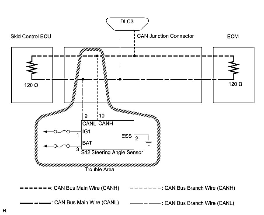 1. CHECK OPEN IN CAN BUS WIRE (STEERING ANGLE SENSOR BRANCH WIRE)