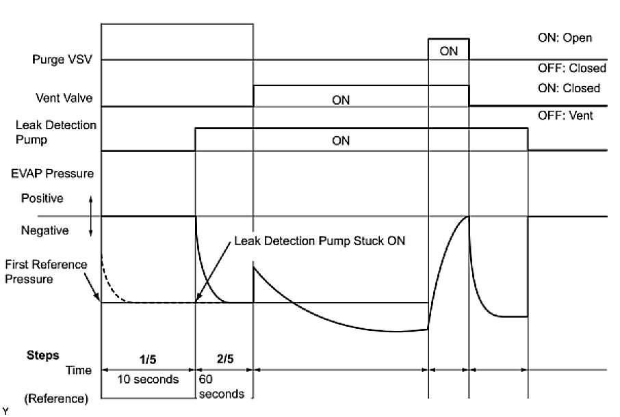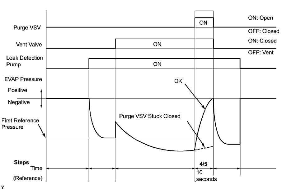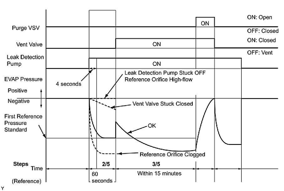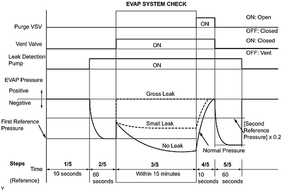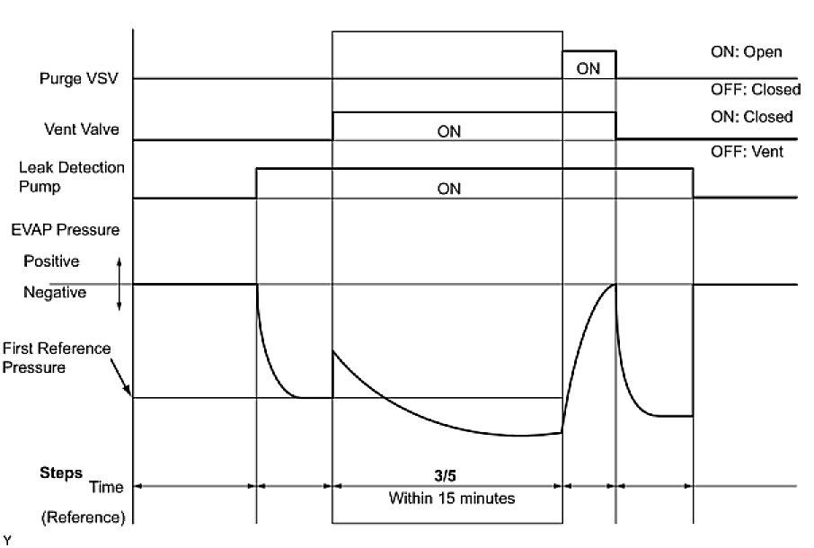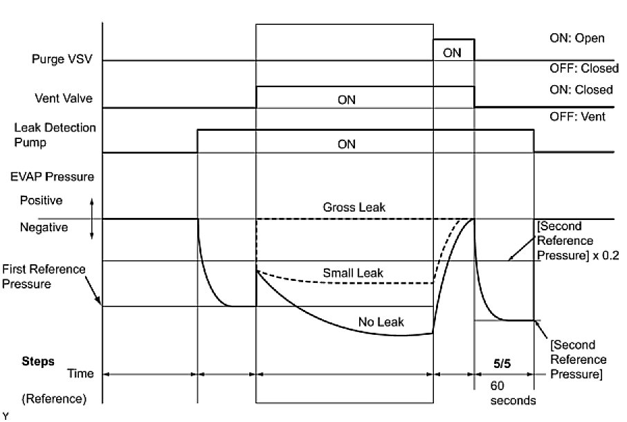 (b) Compare the EVAP pressure in step 3/5 and the second reference pressure standard (step 5/5).