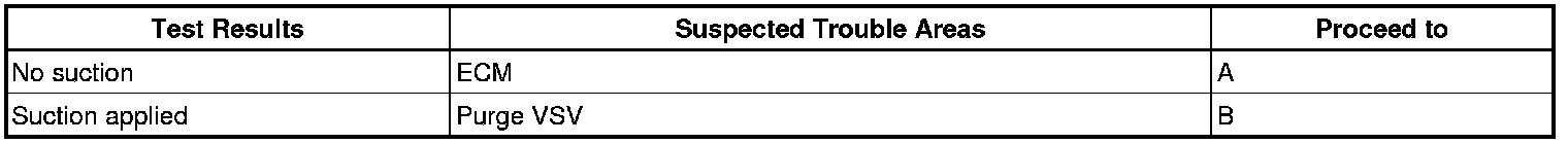 If any EVAP system DTCs are set, the malfunctioning area can be determined using the table below.