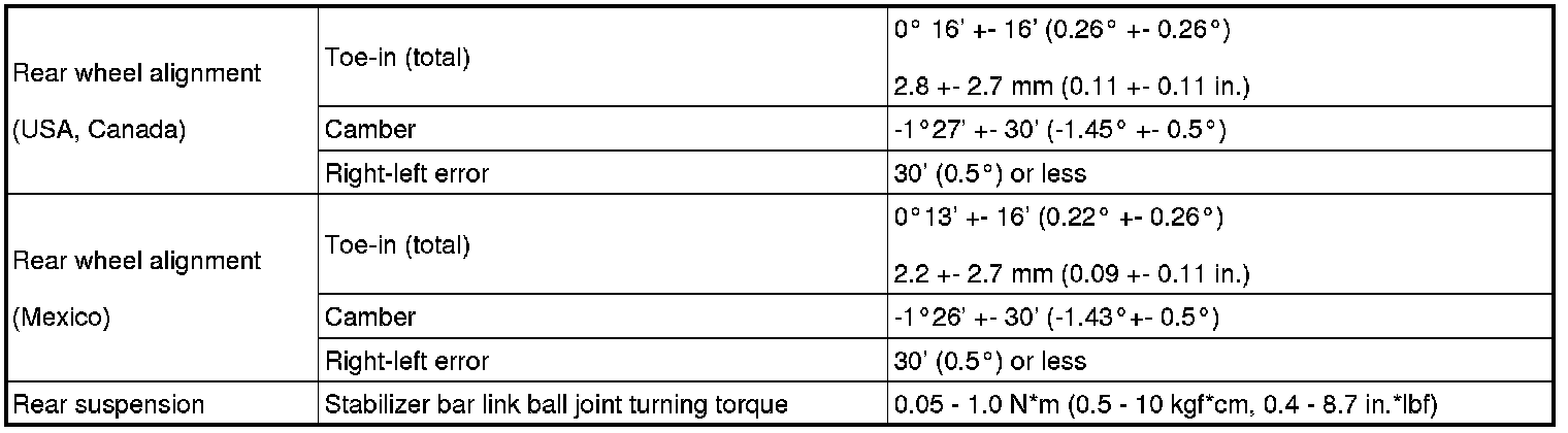 SERVICE SPECIFICATIONS: SUSPENSION: