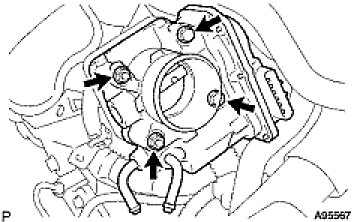 INTAKE MANIFOLDInstall the intake manifold and throttle body with the 2 brackets, 4 bolts and 2 nuts.