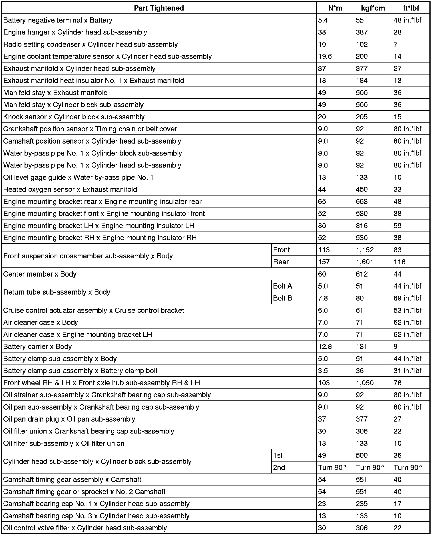 Torque Specifications