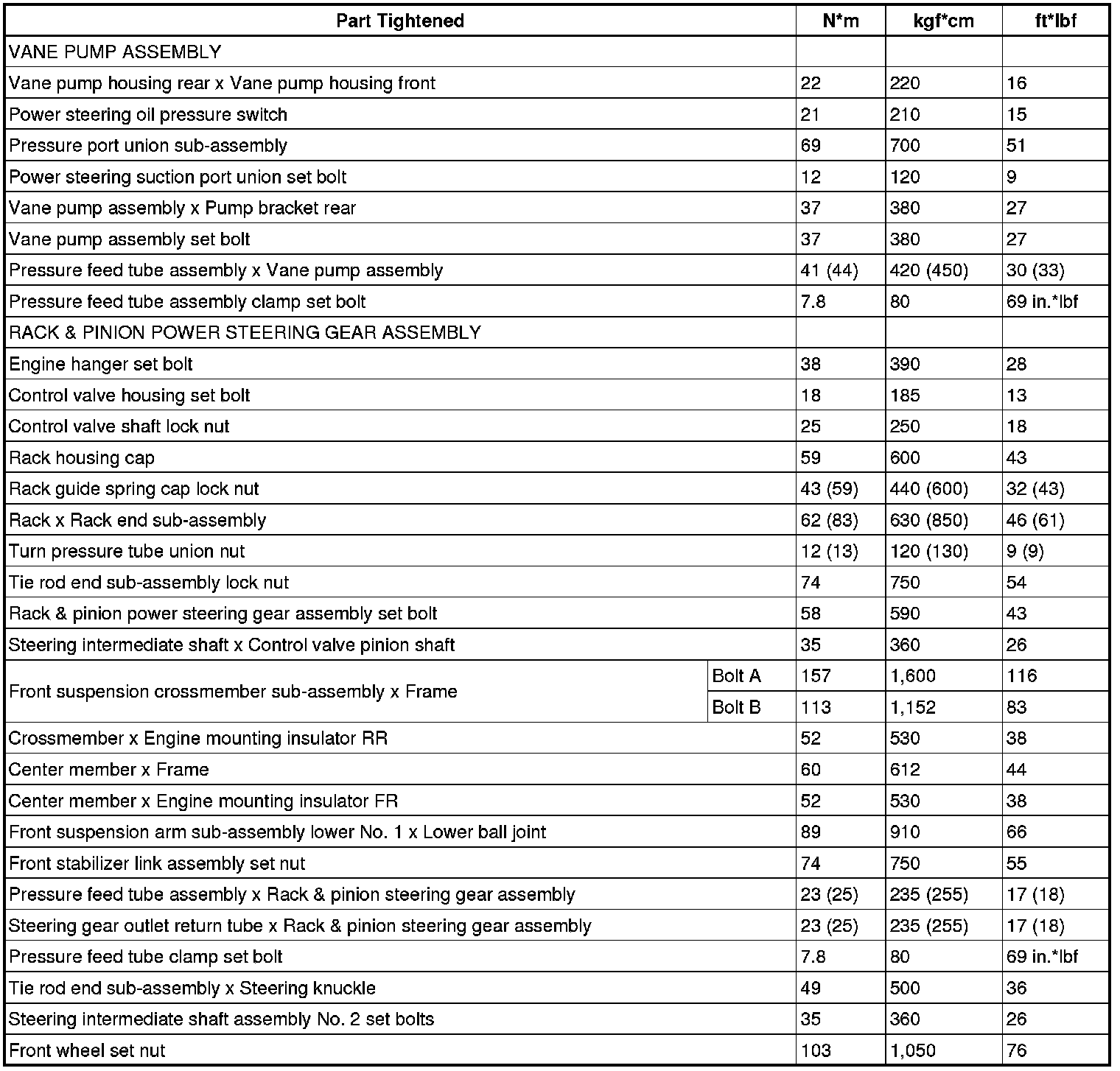 TORQUE SPECIFICATIONS