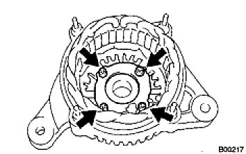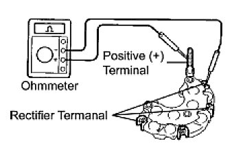 (1) Using an ohmmeter, measure the resistance between the positive (+) terminal and each rectifier terminal.