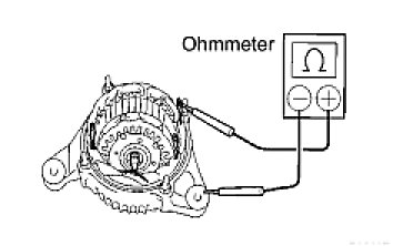 (1) Using an ohmmeter, measure the resistance between the slip rings.