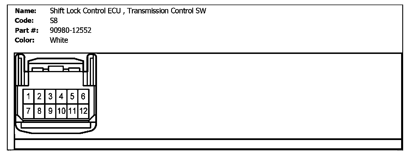 S8 (Shift Lock Control ECU, Transmission Control SW):