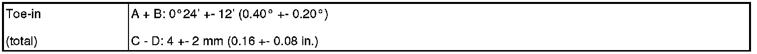 - If toe-in is not within the specified range, inspect the suspension parts and replace them if necessary.