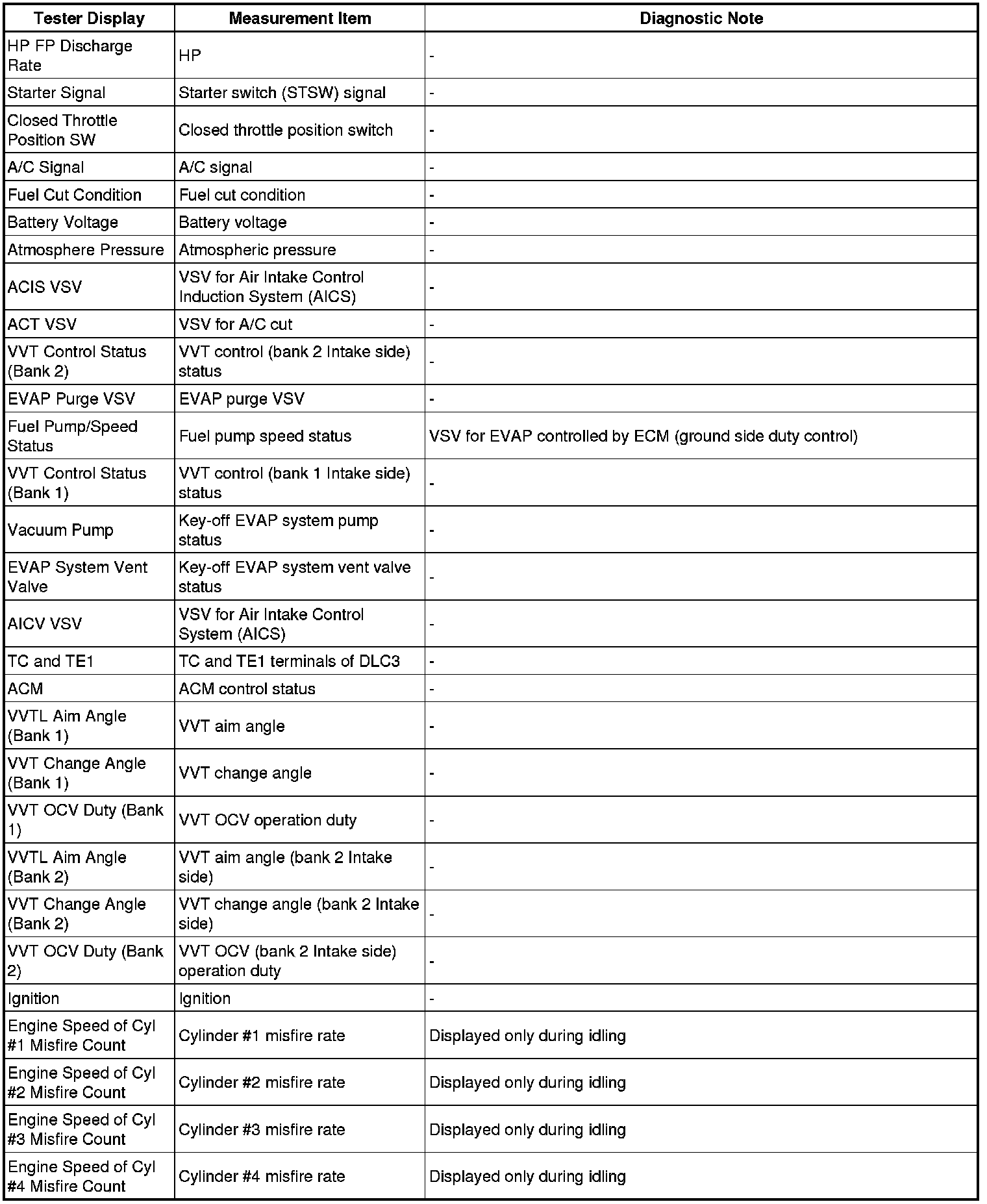 2. LIST OF FREEZE FRAME DATA