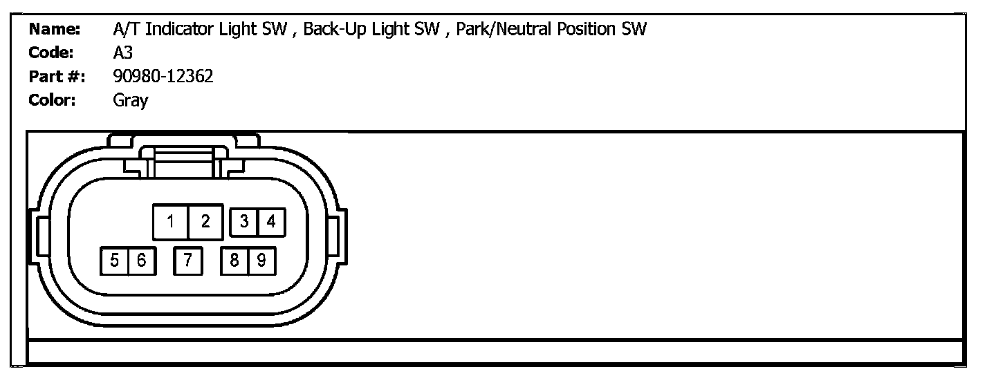 A3 (A/T Indicator Light SW, Back-Up Light SW, Park/Neutral Position SW):