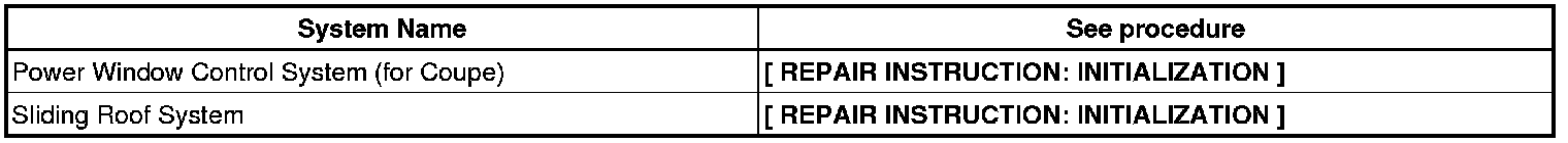 NOTE: When the negative (-) battery cable is disconnected, initialize the following systems after the cable is reconnected.
