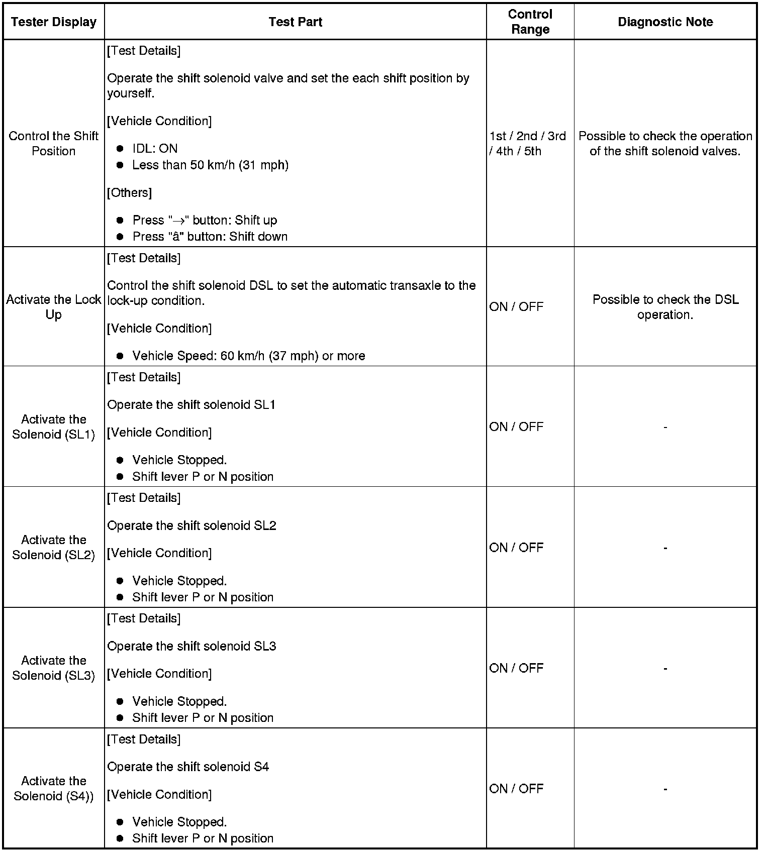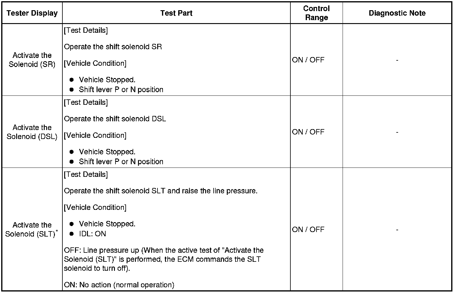 *: "Activate the Solenoid (SLT)" in the Active Test is performed to check the line pressure changes by connecting the SST to the automatic transaxle, which is used in the HYDRAULIC TEST (Hydraulic Test) as well.