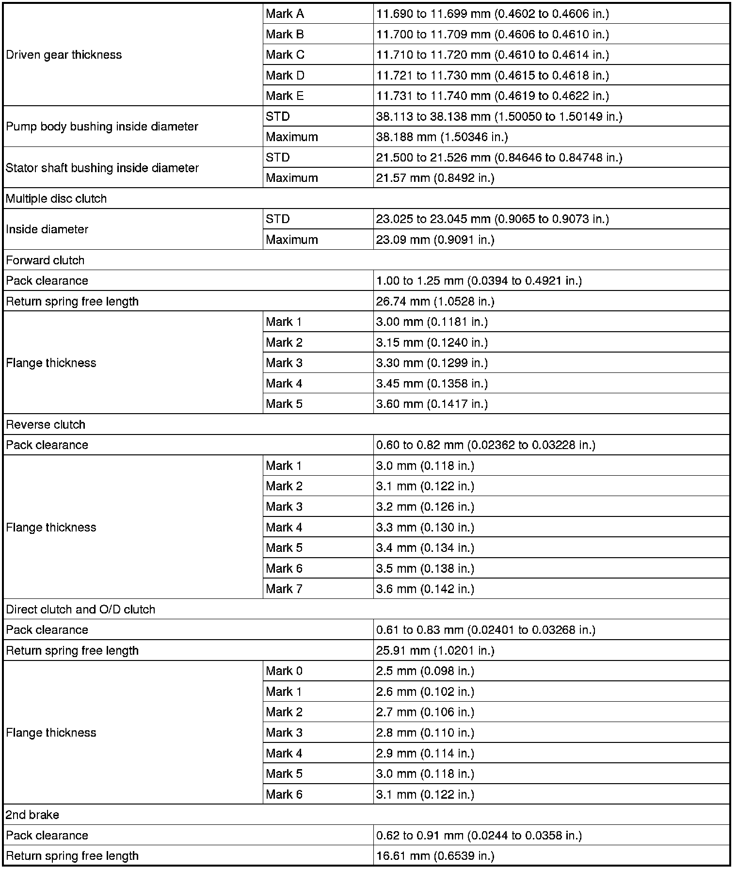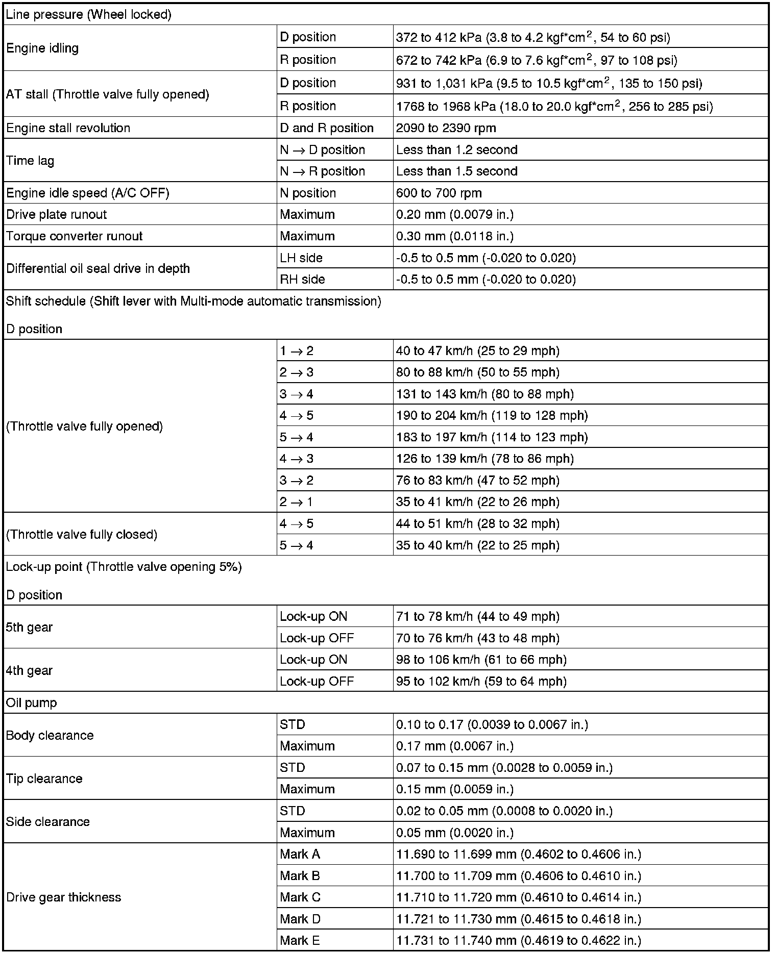 SERVICE SPECIFICATIONS: U151E AUTOMATIC TRANSAXLE: