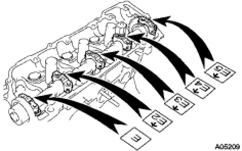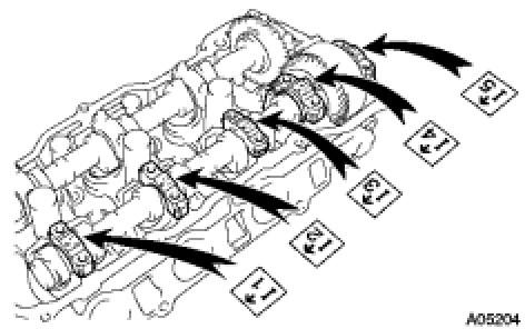 Uniformly tighten the 10 bearing cap bolts in the sequence shown in the illustration.