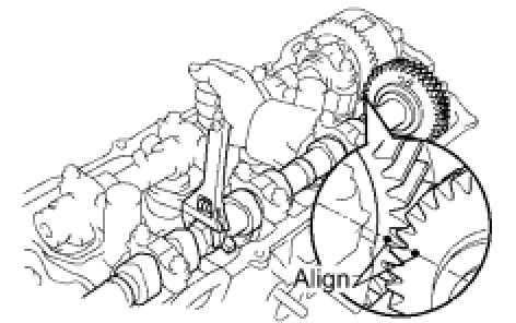 Align the gear teeth of the main gear and sub gear, and tighten the service bolt.
