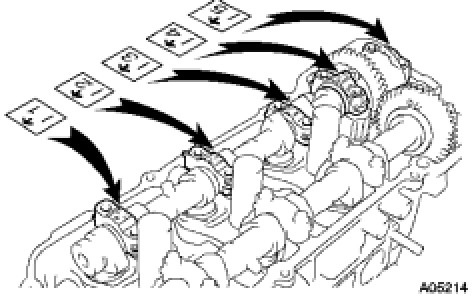 Uniformly tighten the 10 bearing cap bolts uniformly in the sequence shown in the illustration.