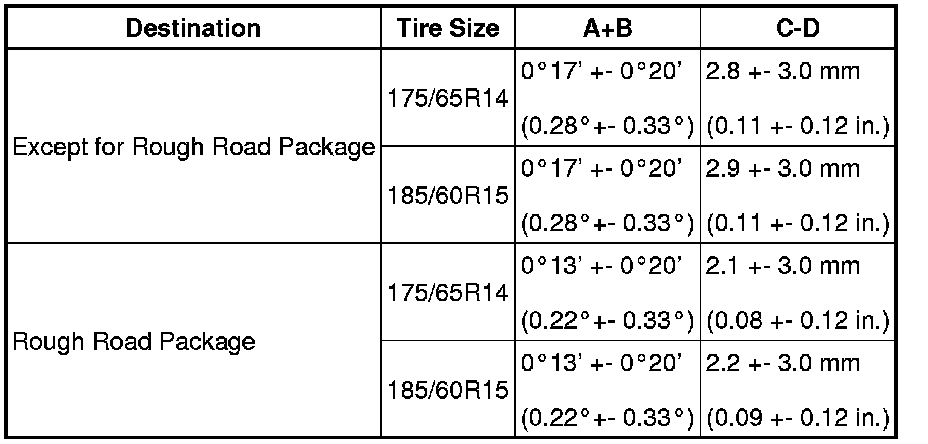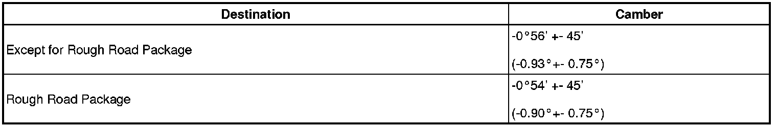NOTE: The tolerance for the difference between the left and right wheels is 30' (0.5°) or less for both cambers.